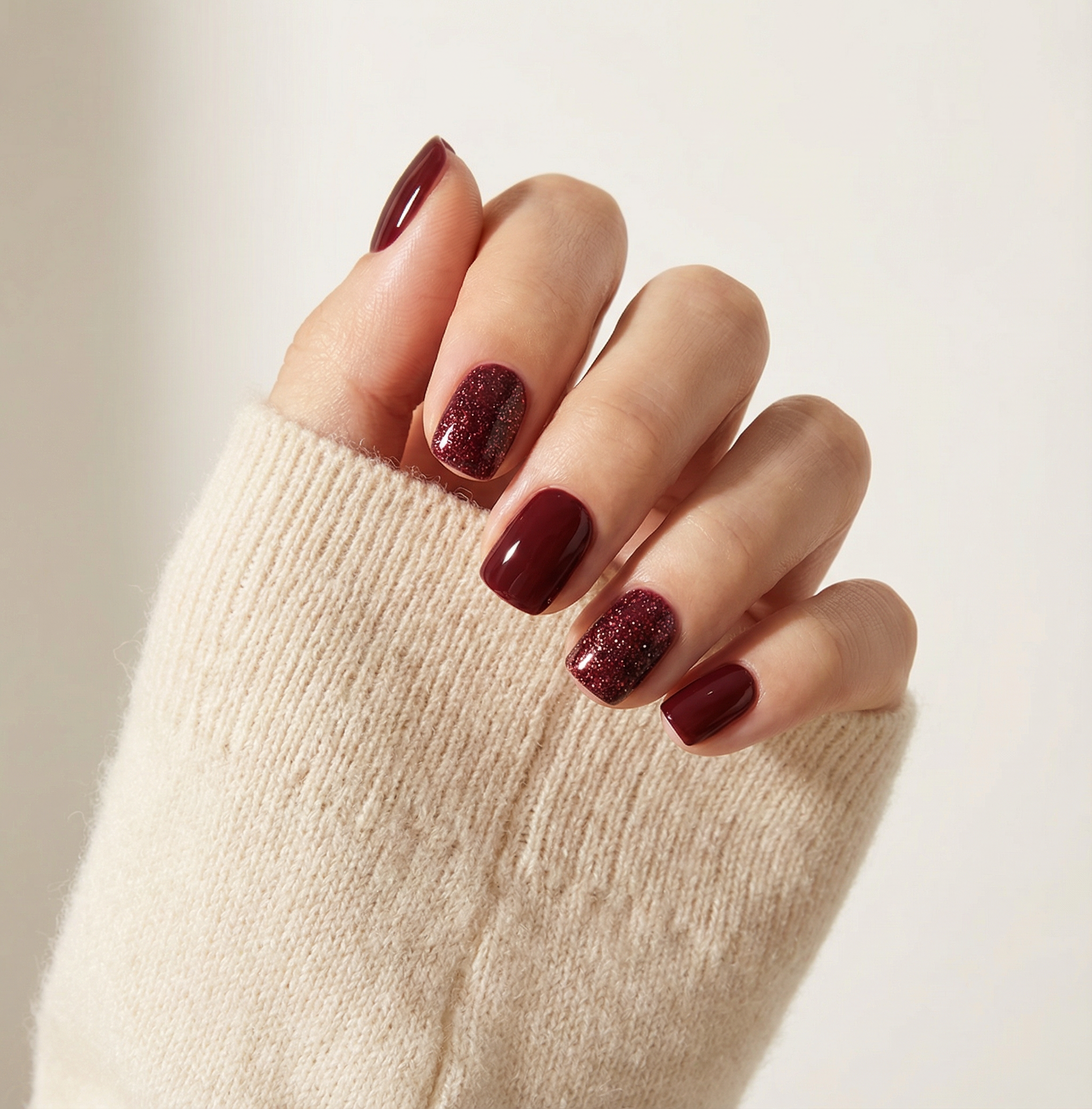 Love the mix of glossy and glitter nails. They feel comfortable and look polished, perfect for winter or evenings out.